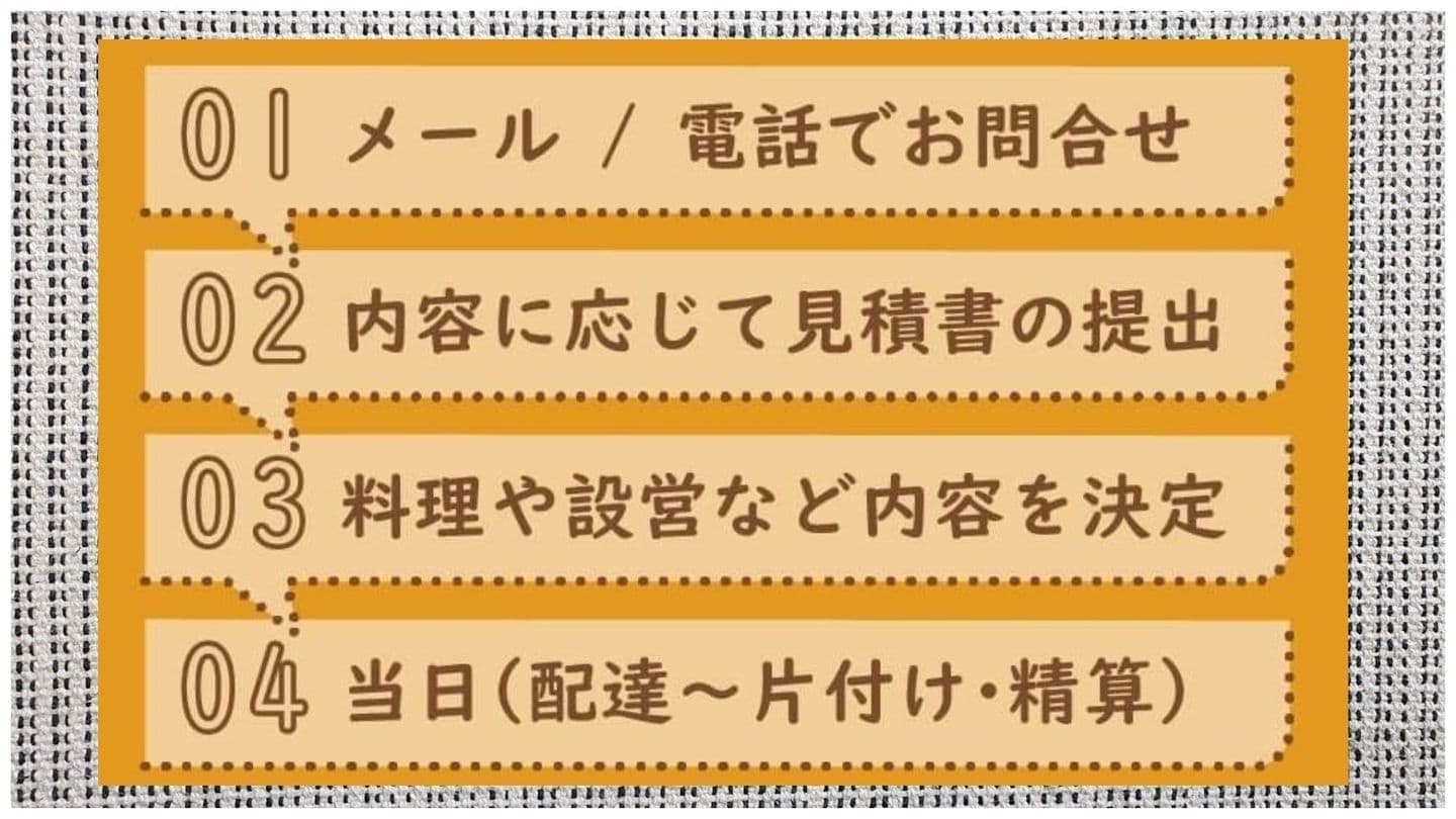 | ◆手間いらず設営プラン | お一人様3,500円(税込)~ご予算 |